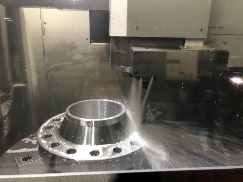 最新設備の充実により、お客様のニーズに即応した品質の高い製造を徹底しています。 左の写真の設備は径の大きい商品も加工可能なオークマ製の大型立形複合加工機、右の写真はマシニングセンタです。 |